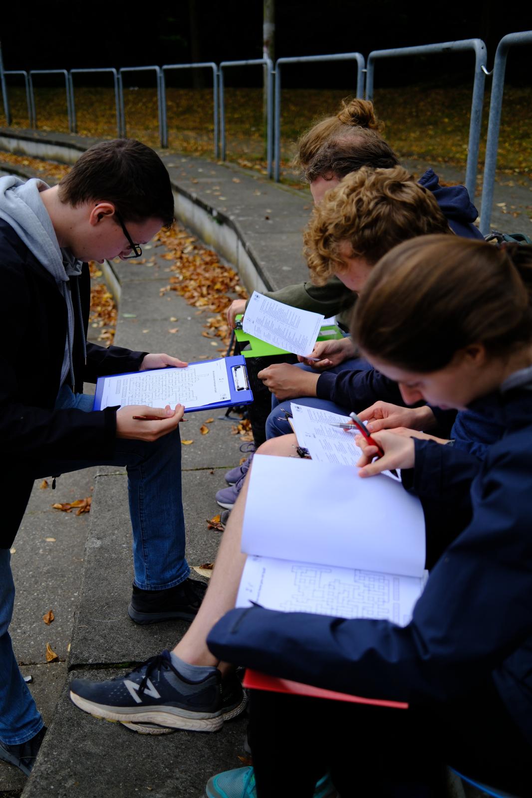 Beim Blick auf die Uhr werden wir etwas unsicher. Wie viele Rätsel mögen jetzt noch kommen? Wenn der Zeitplan so ist, dass viele Teams das letzte Rätsel finden sollen, liegen wir nicht so gut in der Zeit. Wie viele Lösungen werden wir bis zum Abschluss wohl noch finden?
