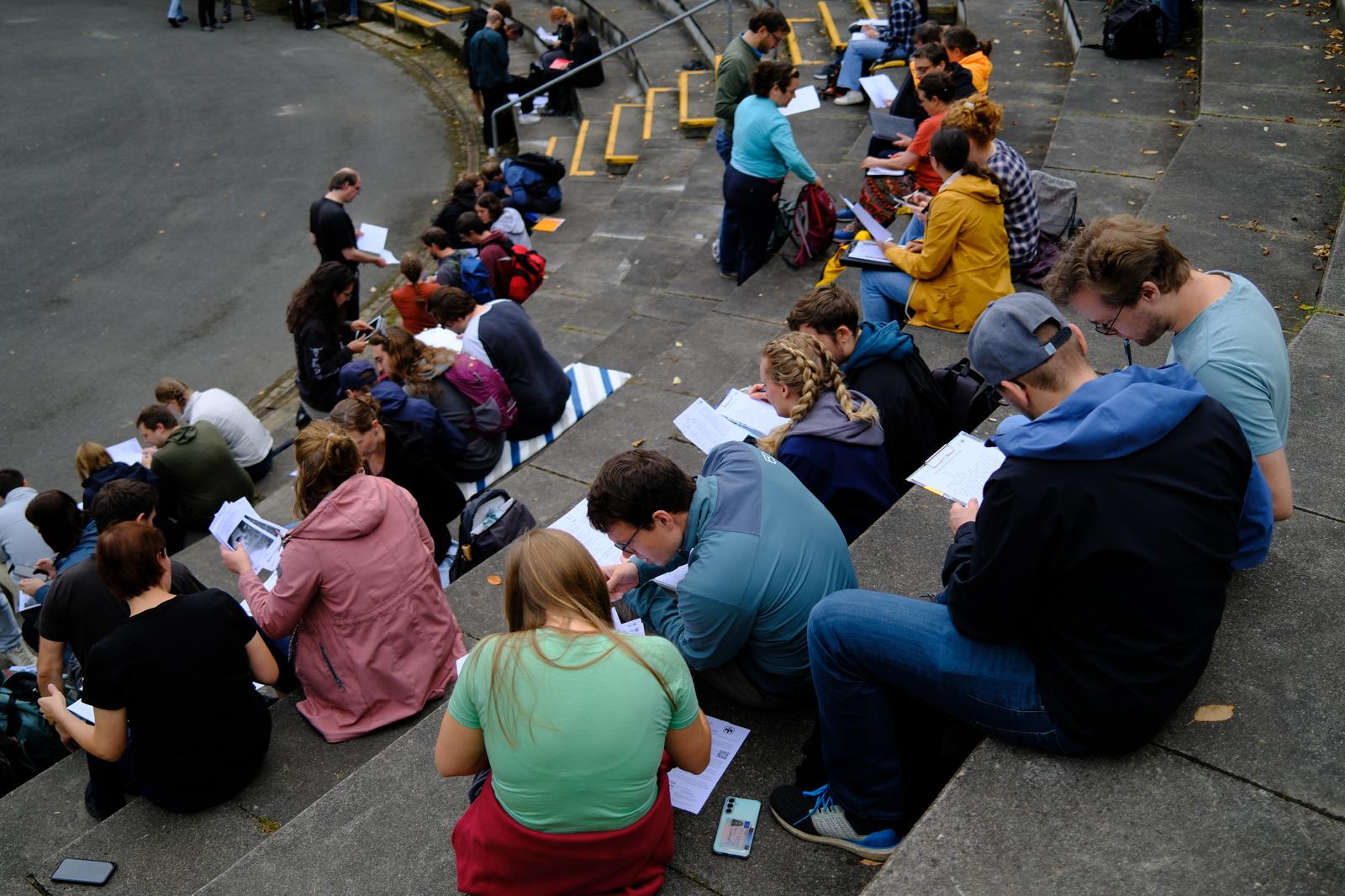 In diesem Jahr sind 41 Teams um 10 Uhr in Borbeck gestartet und wir hatten 13 Rätselstationen und zwei Zusatzrätsel vorbereitet, wobei die meisten Teams bis zum Rätselschluss um 20 Uhr sechs bis neun Rätsel erreicht haben.